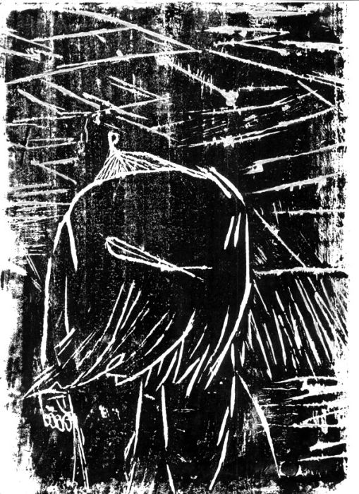 links: 1/4 "krebs" kaltnadelradierung, l. r. tesch; rechts: 1/3 "schmerz" kaltnadelradierung, l. r. tesch